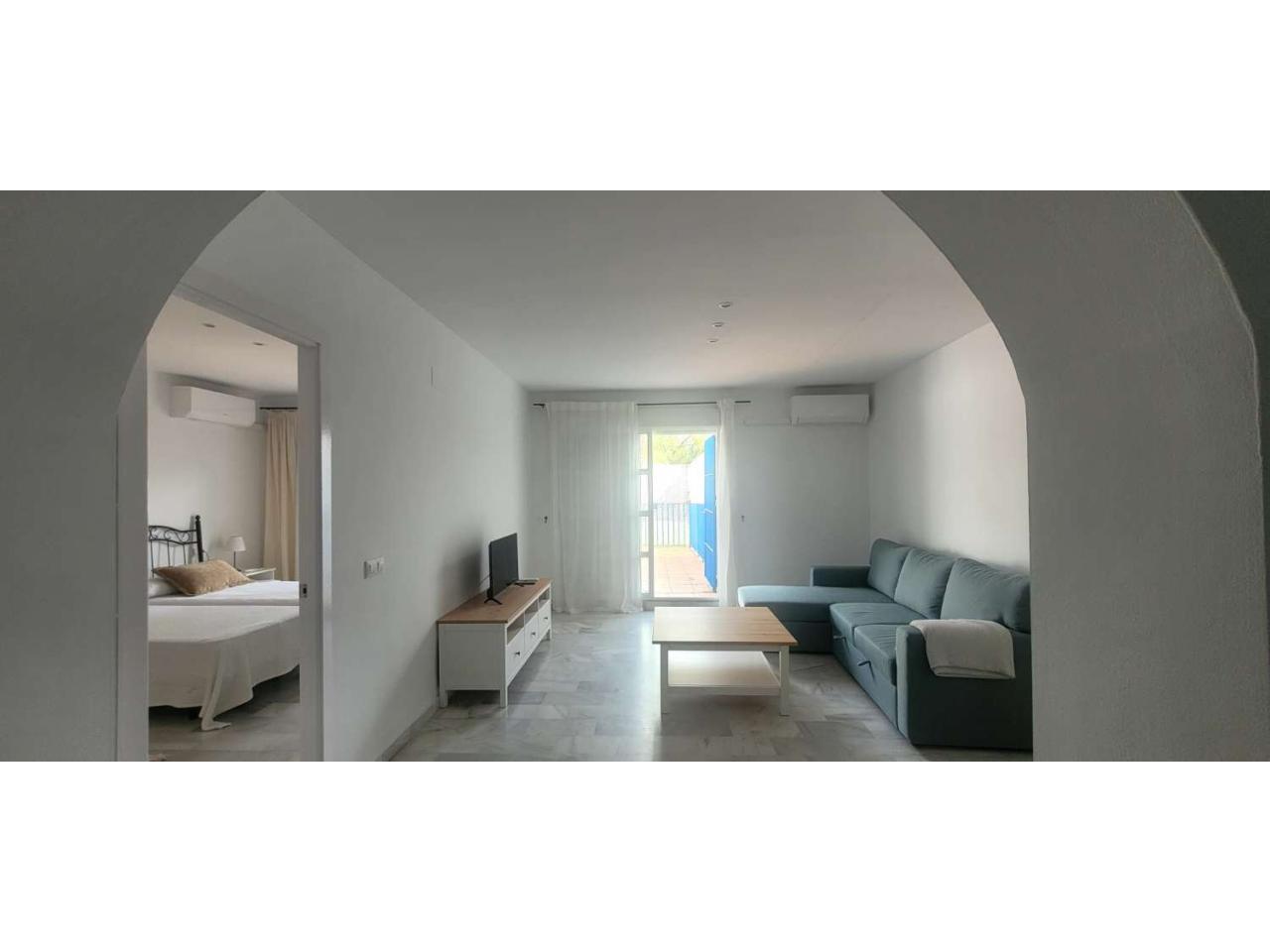 SE ALQUILA ANUAL PISO AMPLIO DE ALTA GAMA: 1 DORMITORIO, 1 BAÑO, TERRAZA, GARAJE, JARDÍN Y PISICINA COMUNITARIOS EN ESPÍRITU SANTO DE SANLÚCAR DE BARRAMEDA